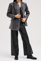 A timeless blazer reimagined with modern detailing. Crafted in a classic pinstripe pattern, it features a traditional notched lapel, button closure, and flap pockets.