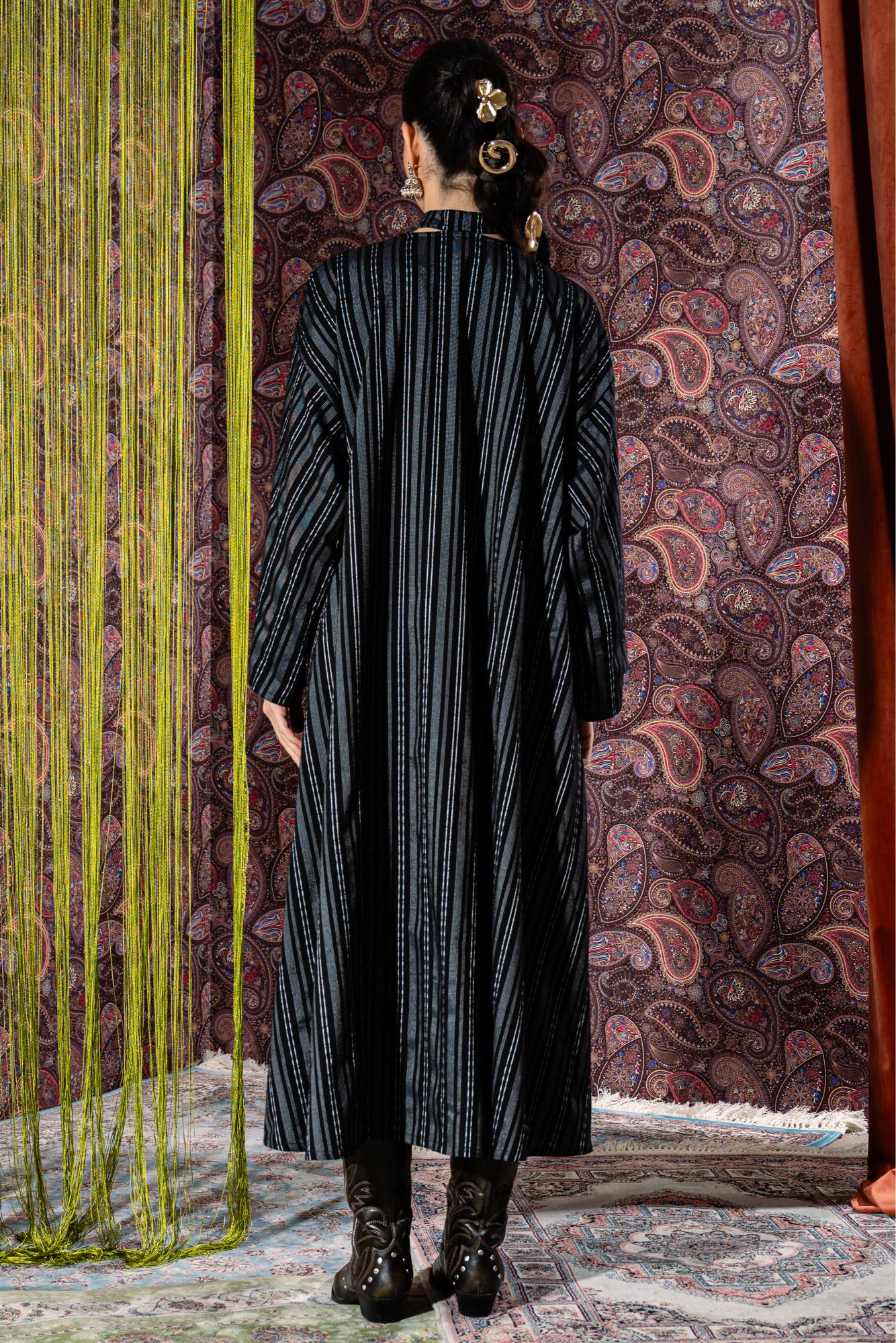 STRIPED KAFTAN WITH ATTACHED COLLAR DETAIL