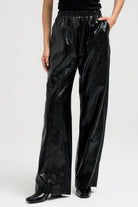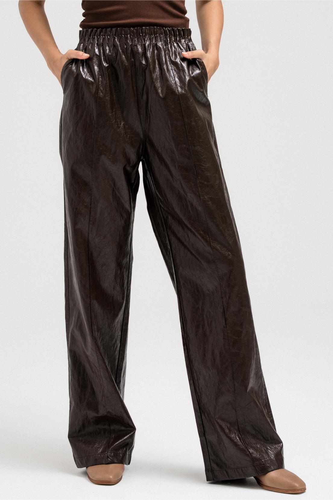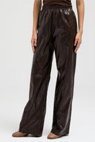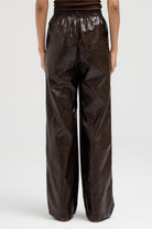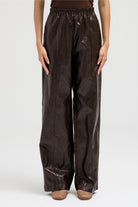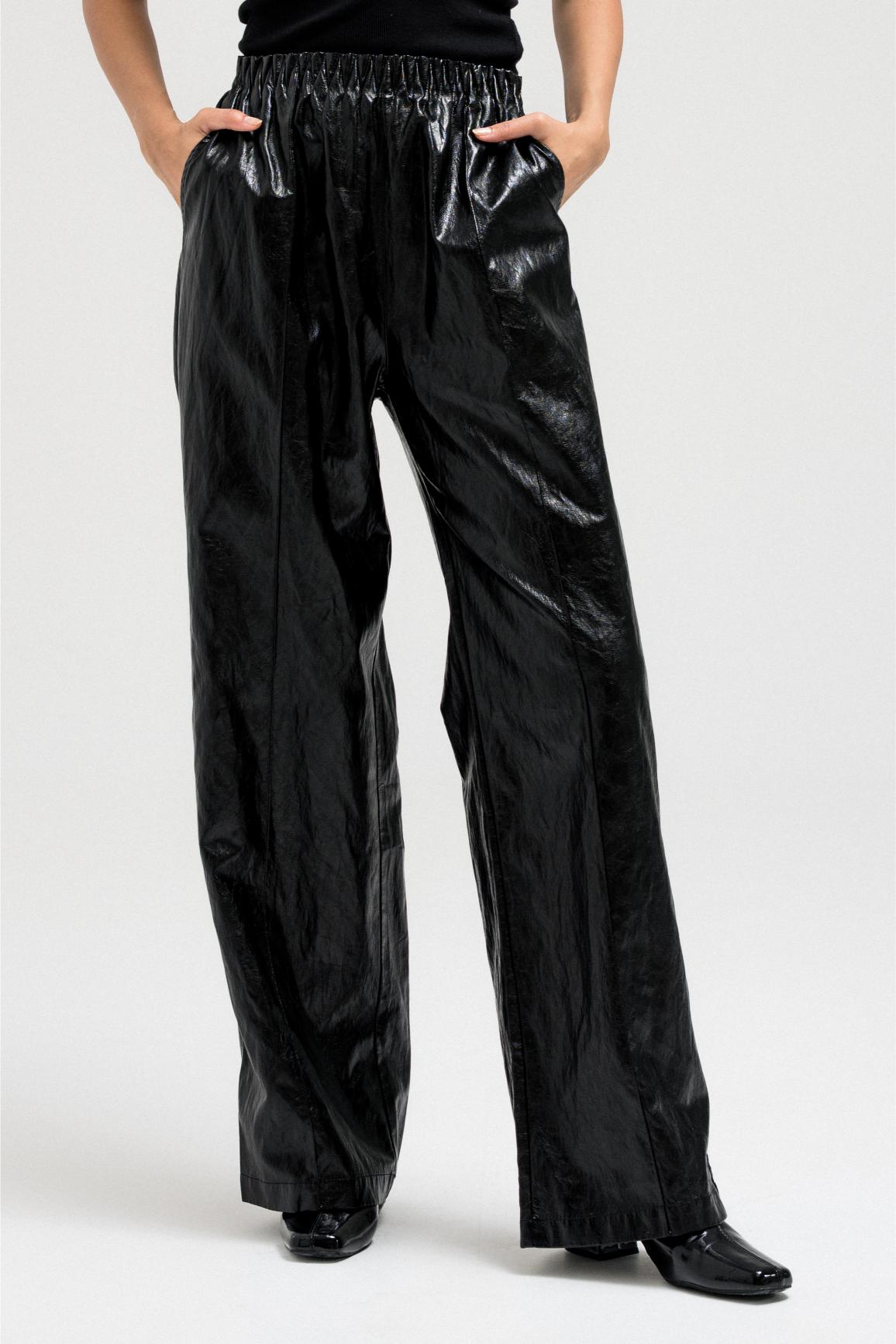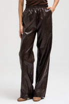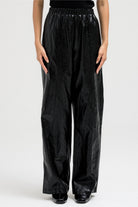 Crafted from lightweight leather material, these pants feature an elastic waistband for a comfortable fit. Designed with a relaxed, slightly tapered silhouette that drapes effortlessly.