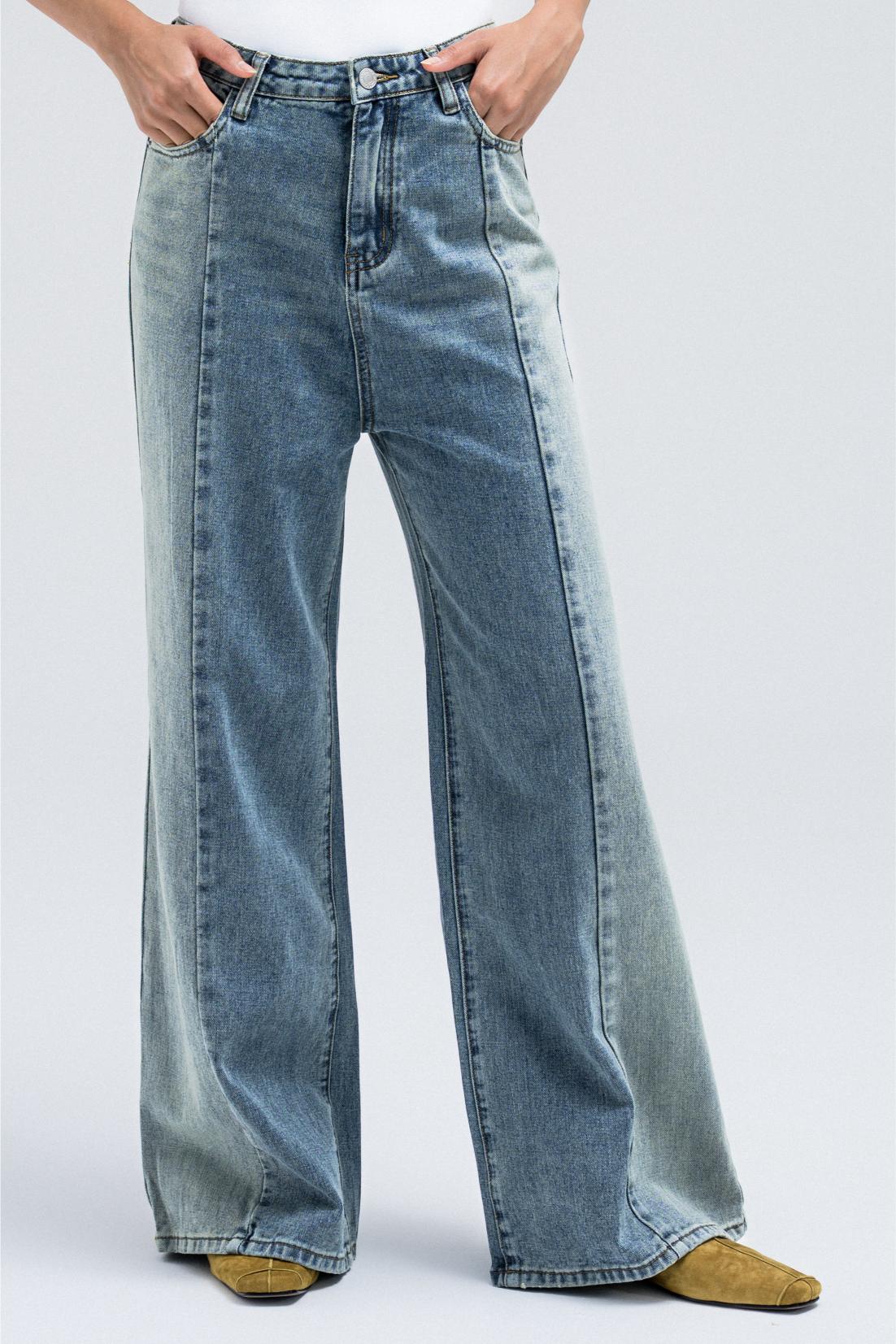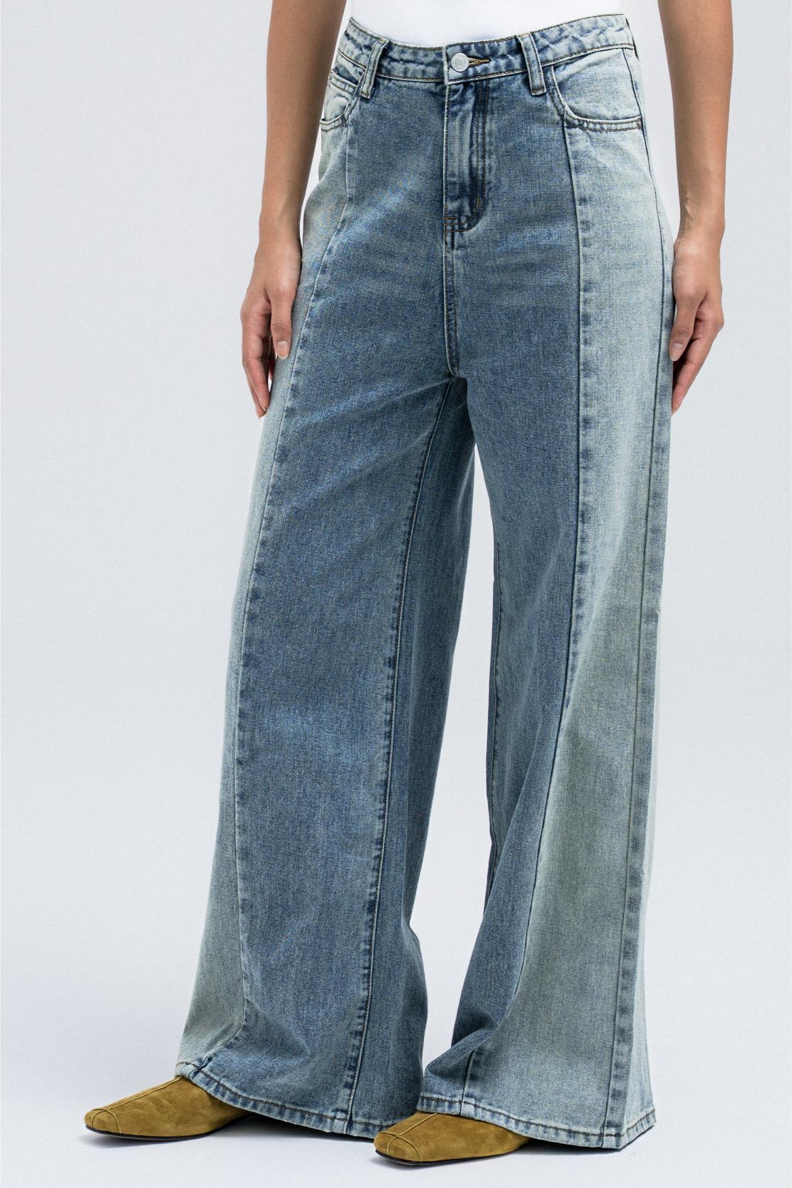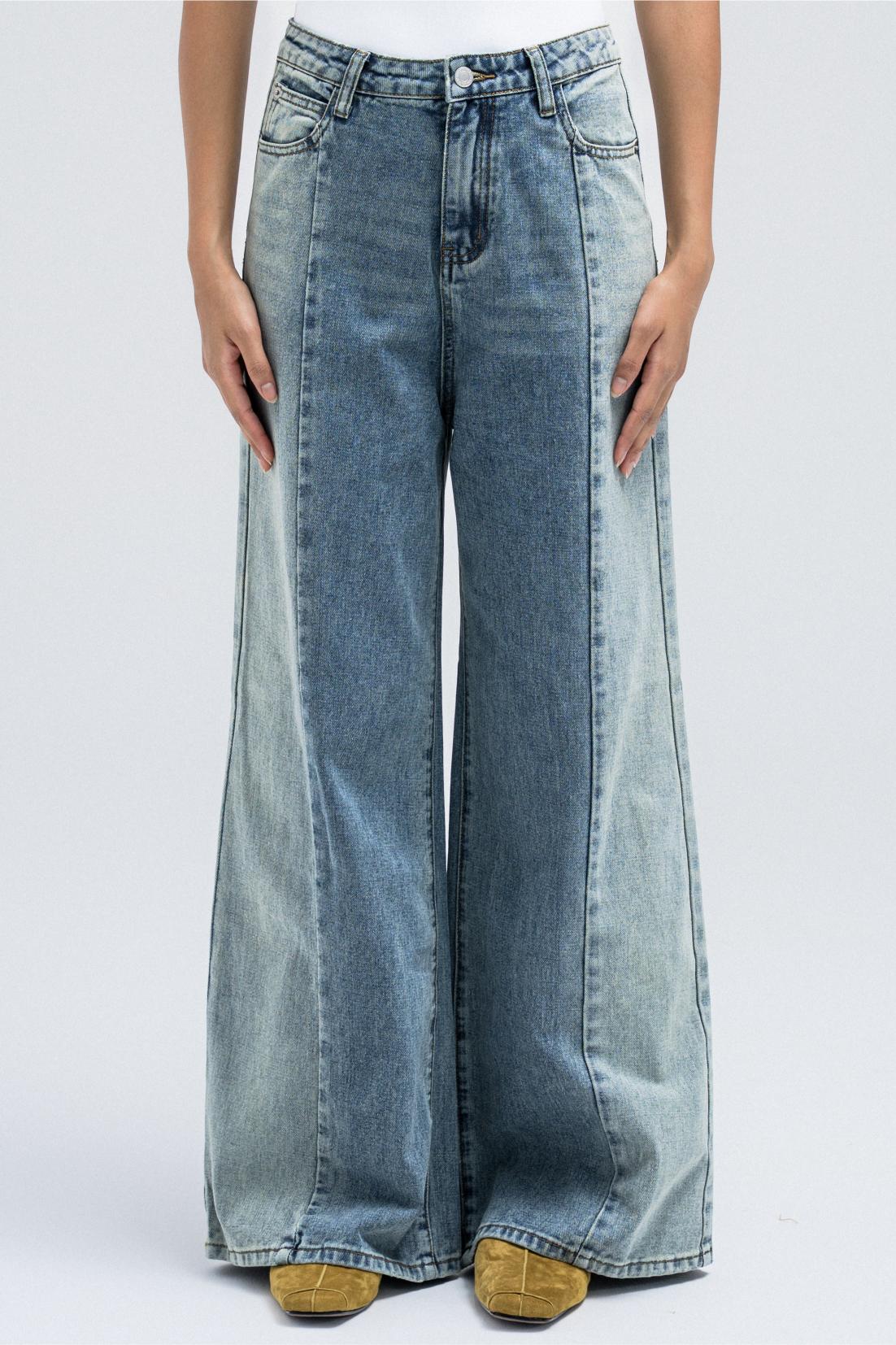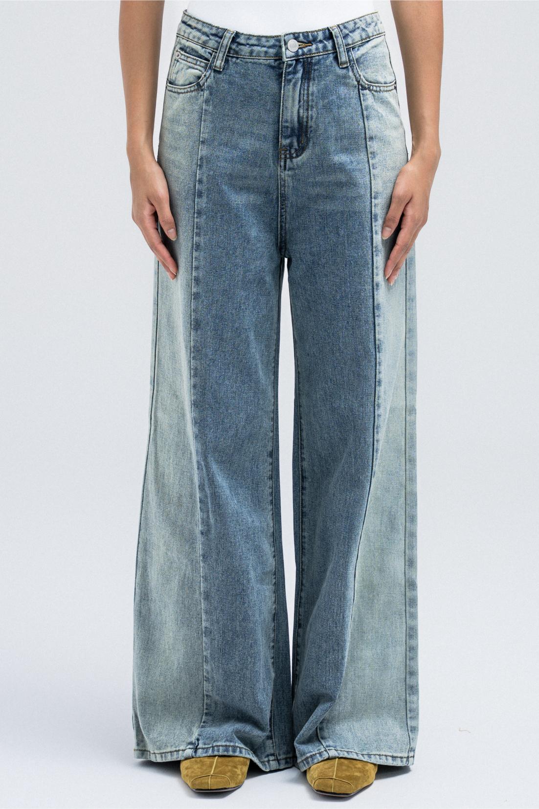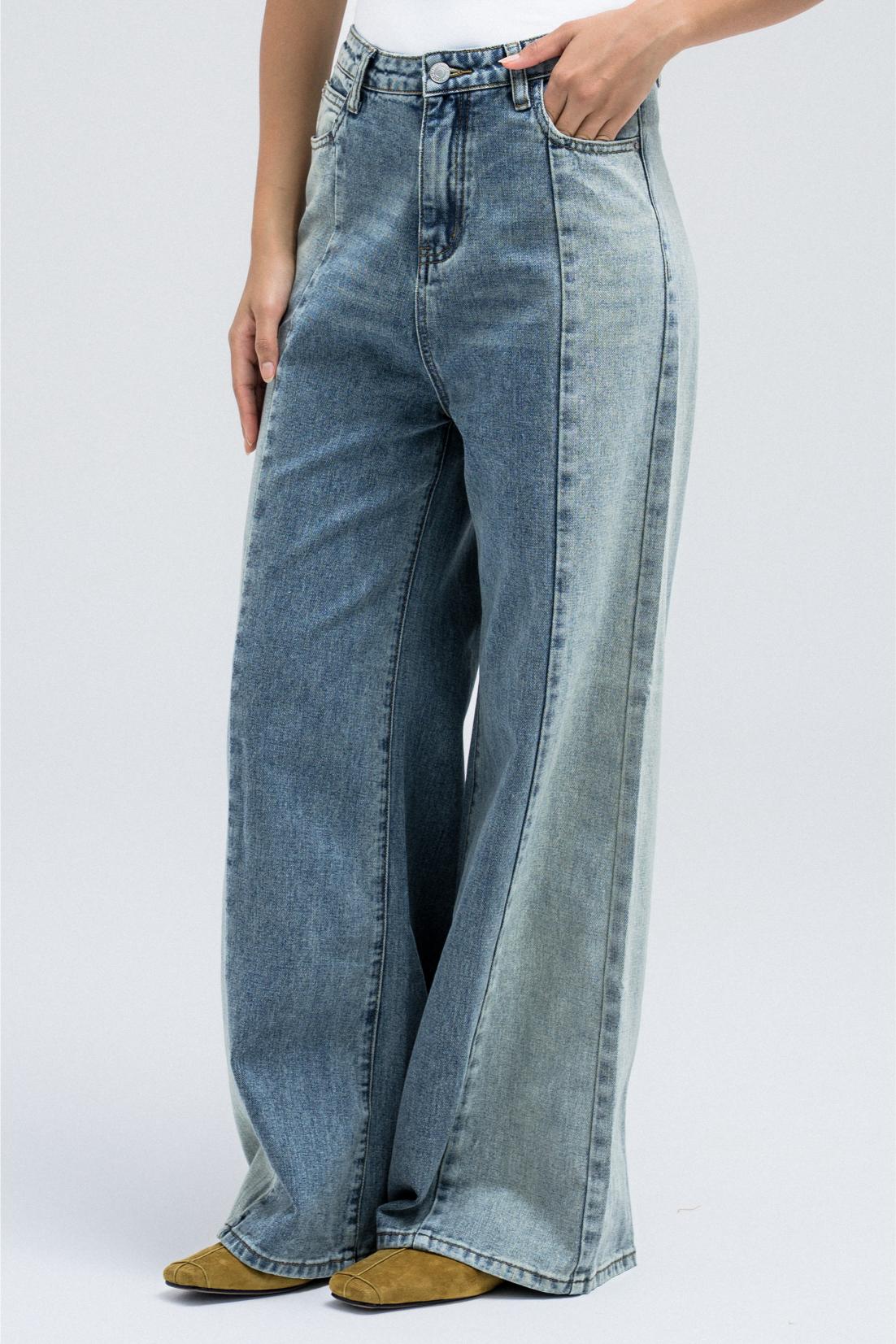 TWO-TONE WIDE-LEG DENIM JEANS