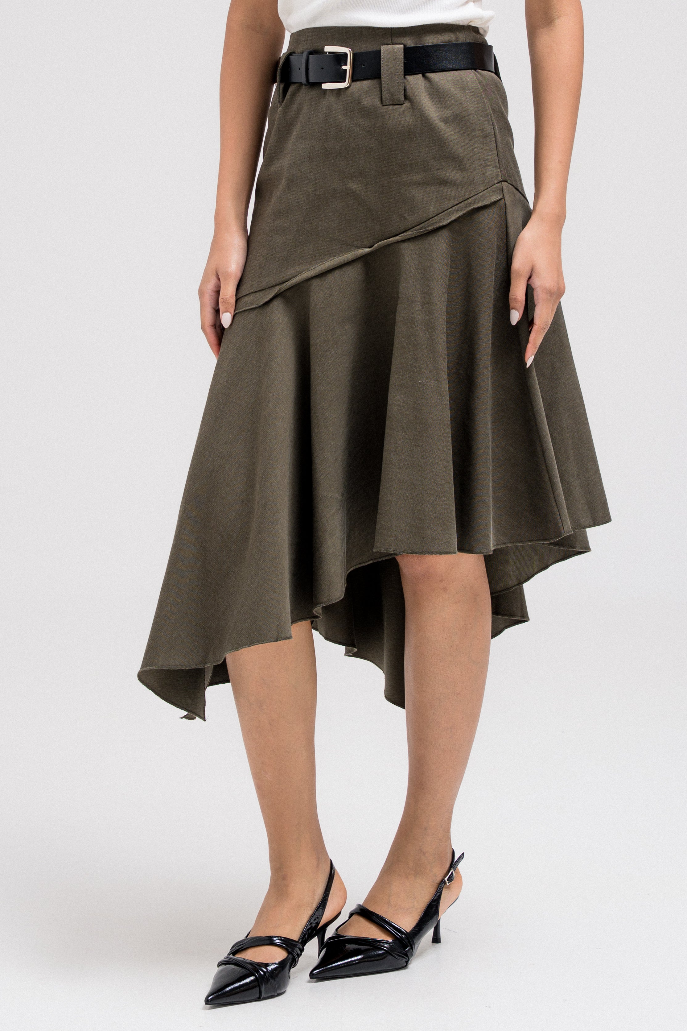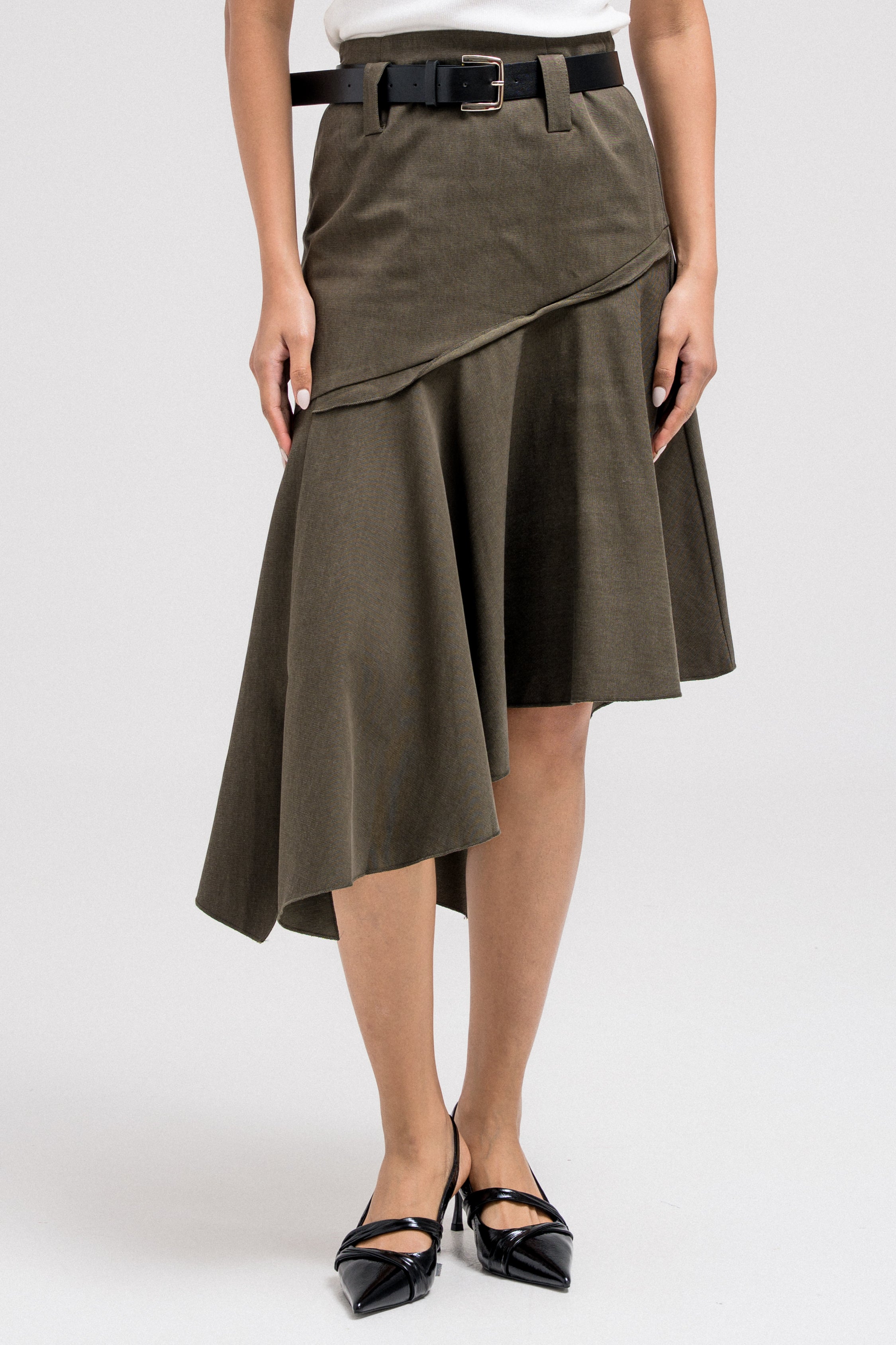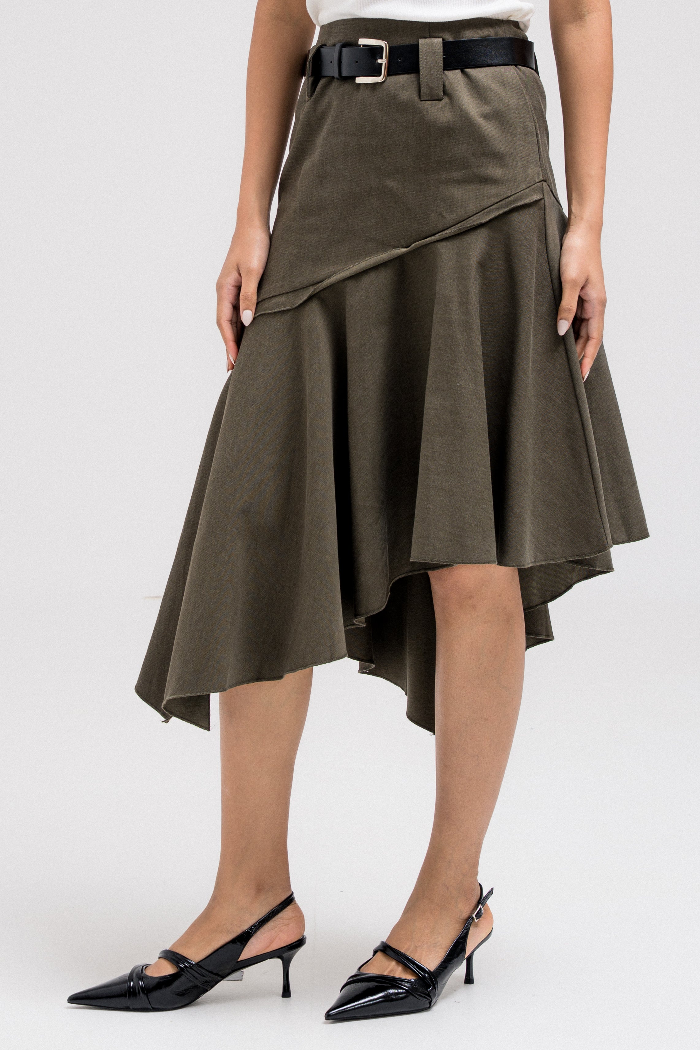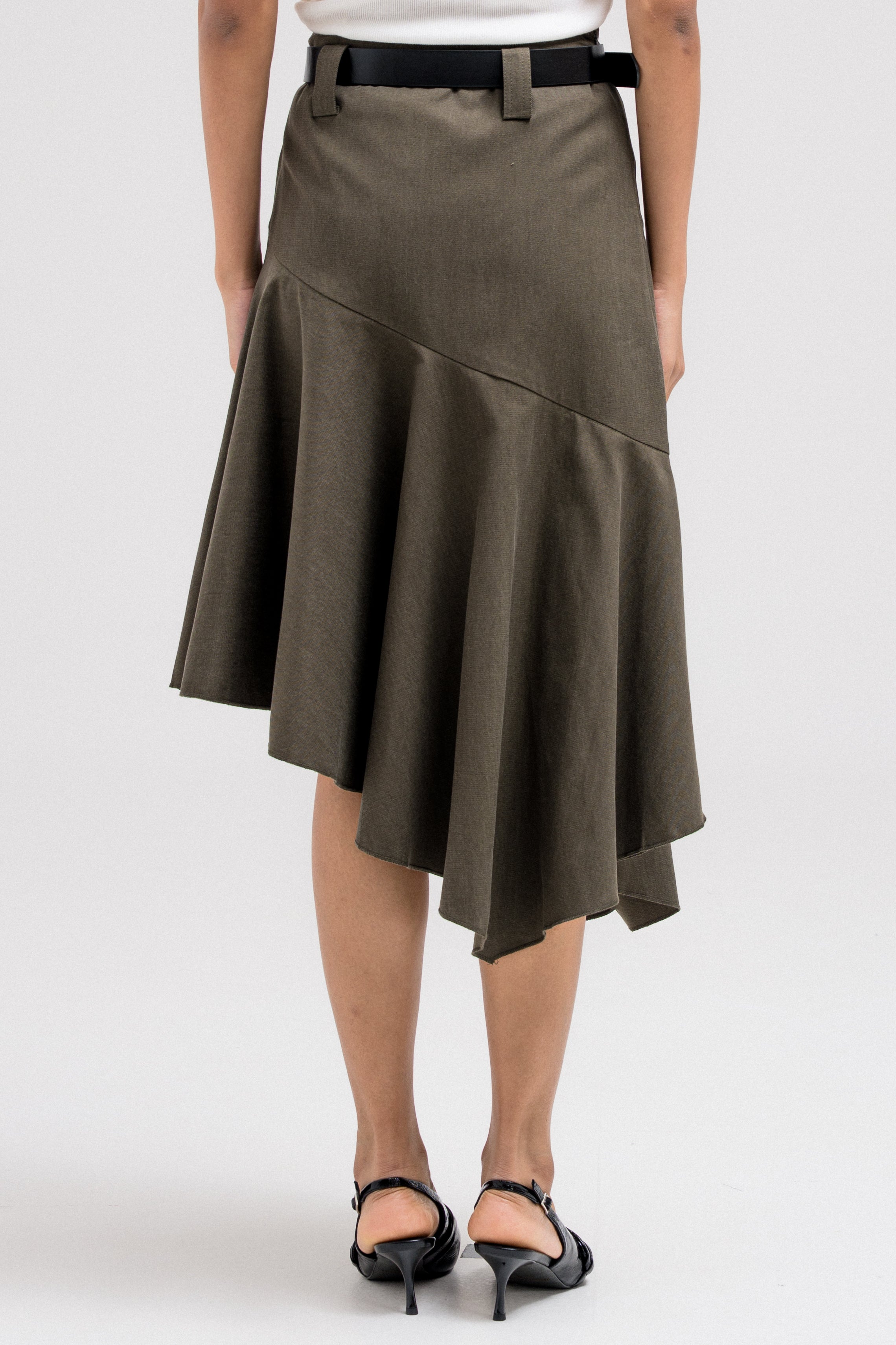 ASYMMETRICAL BELTED FLOWY SKIRT