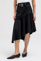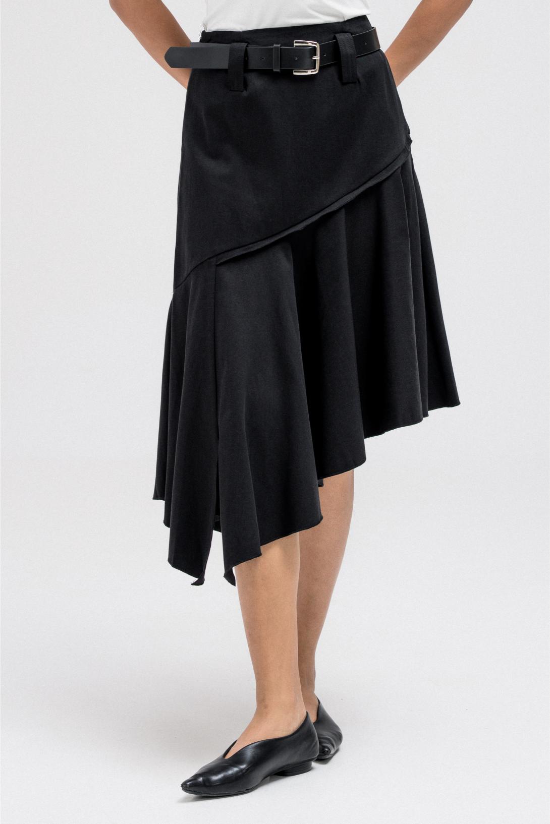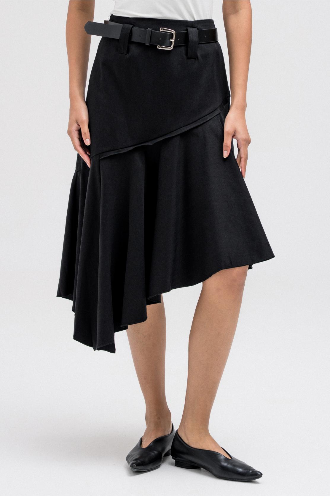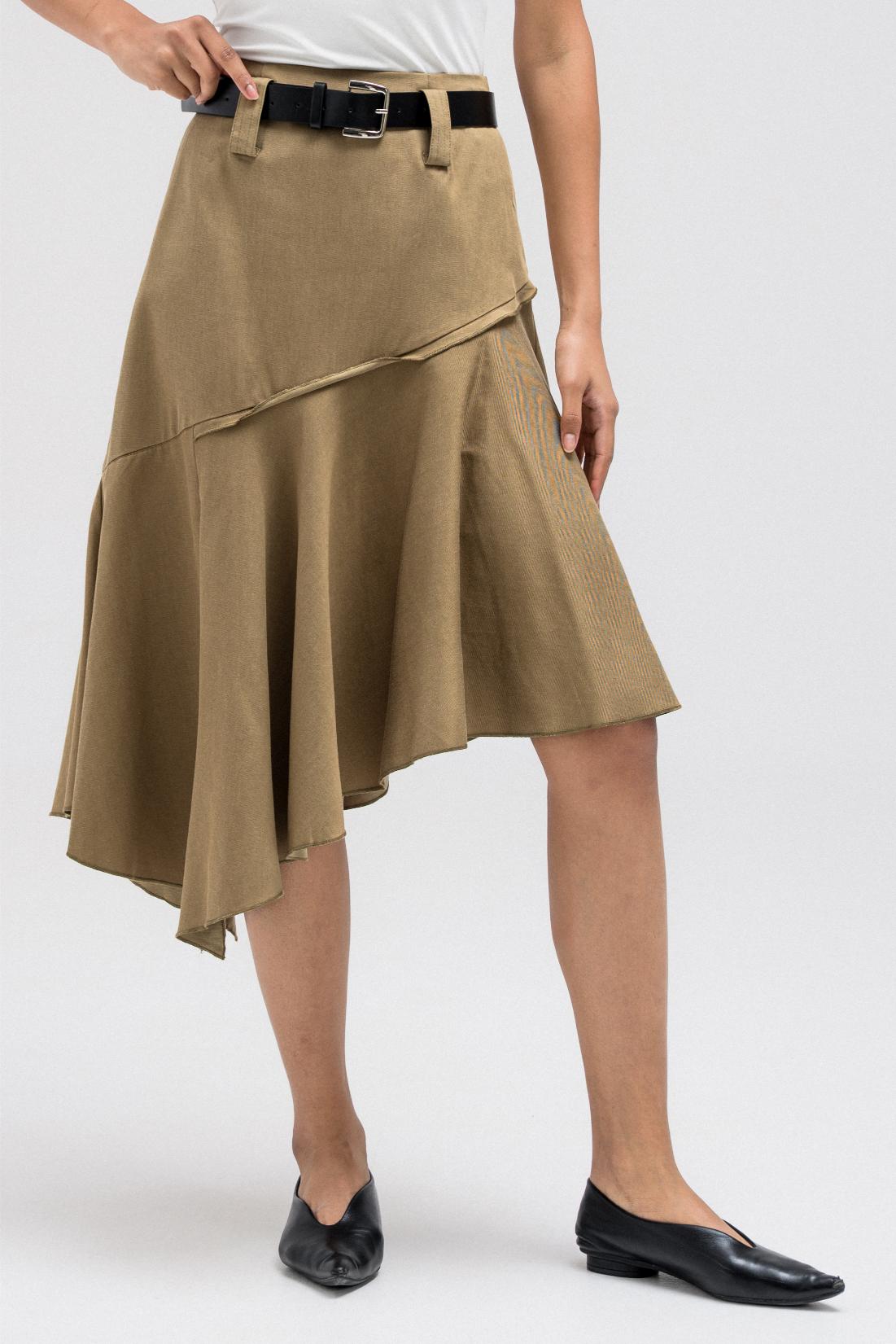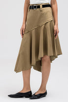 ASYMMETRICAL BELTED FLOWY SKIRT