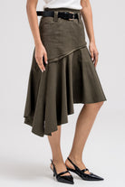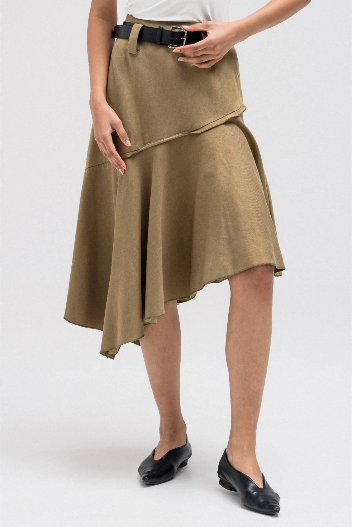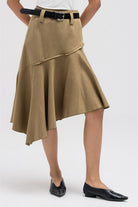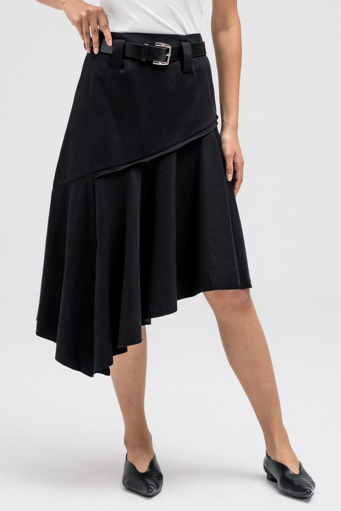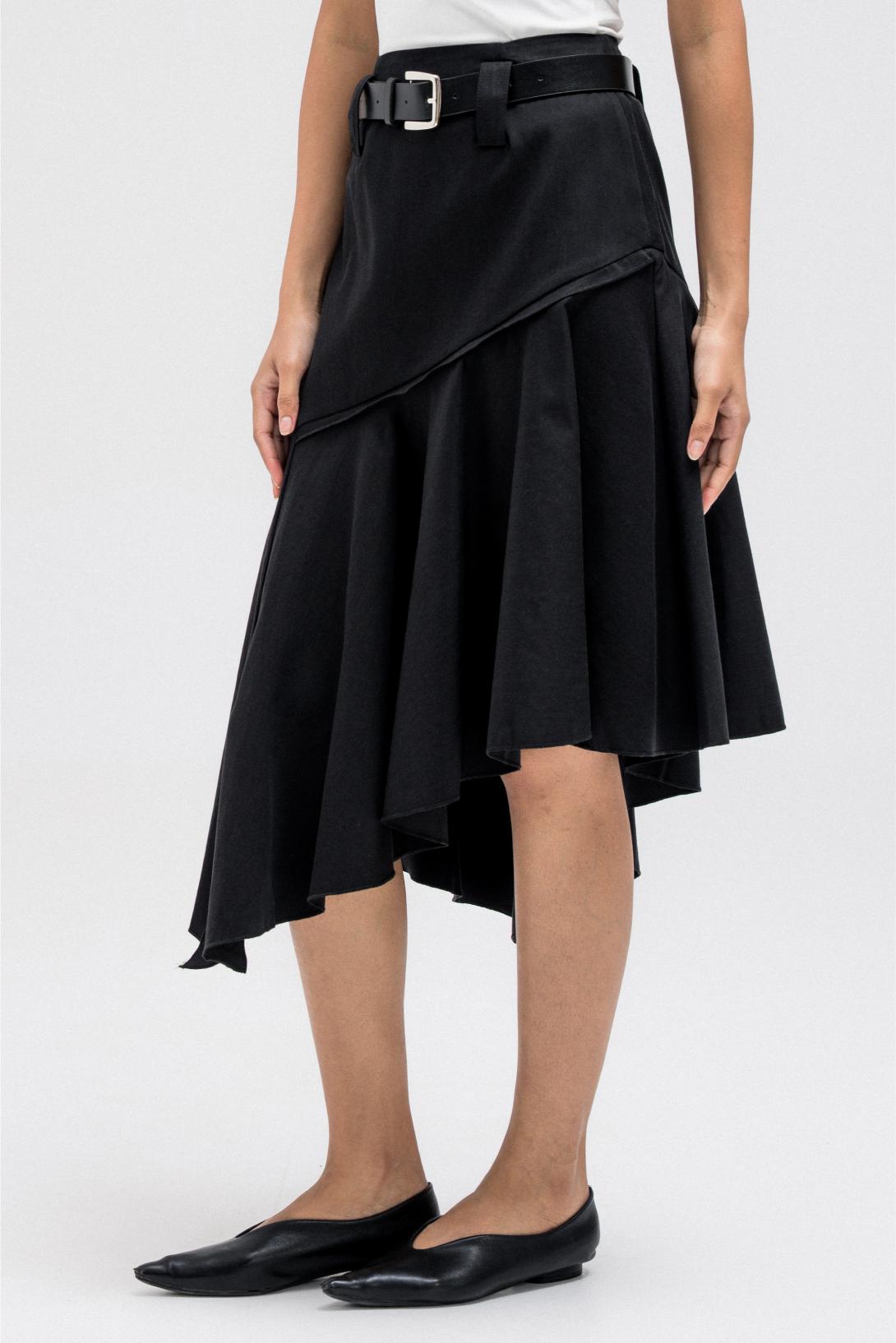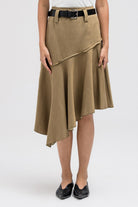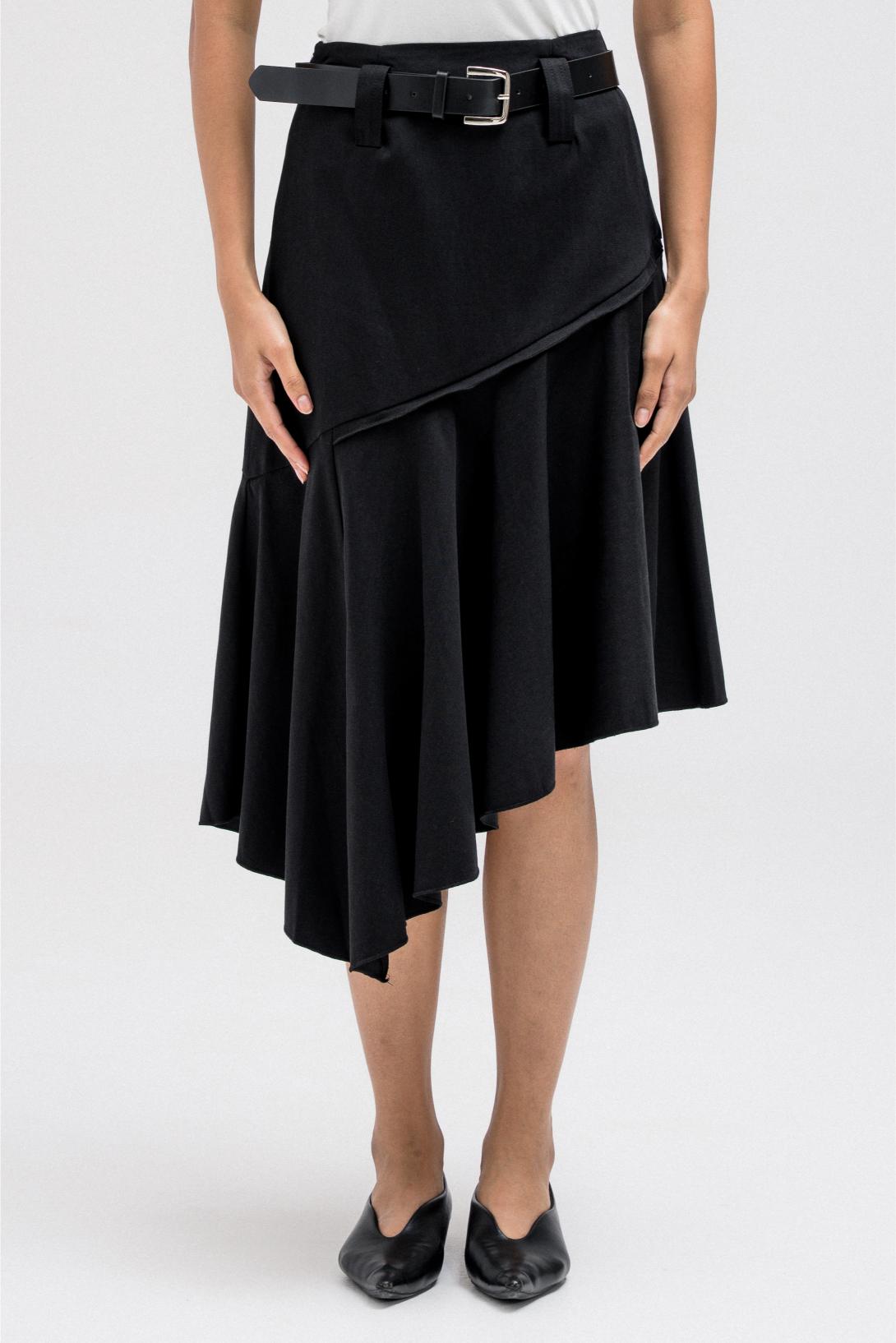 ASYMMETRICAL BELTED FLOWY SKIRT