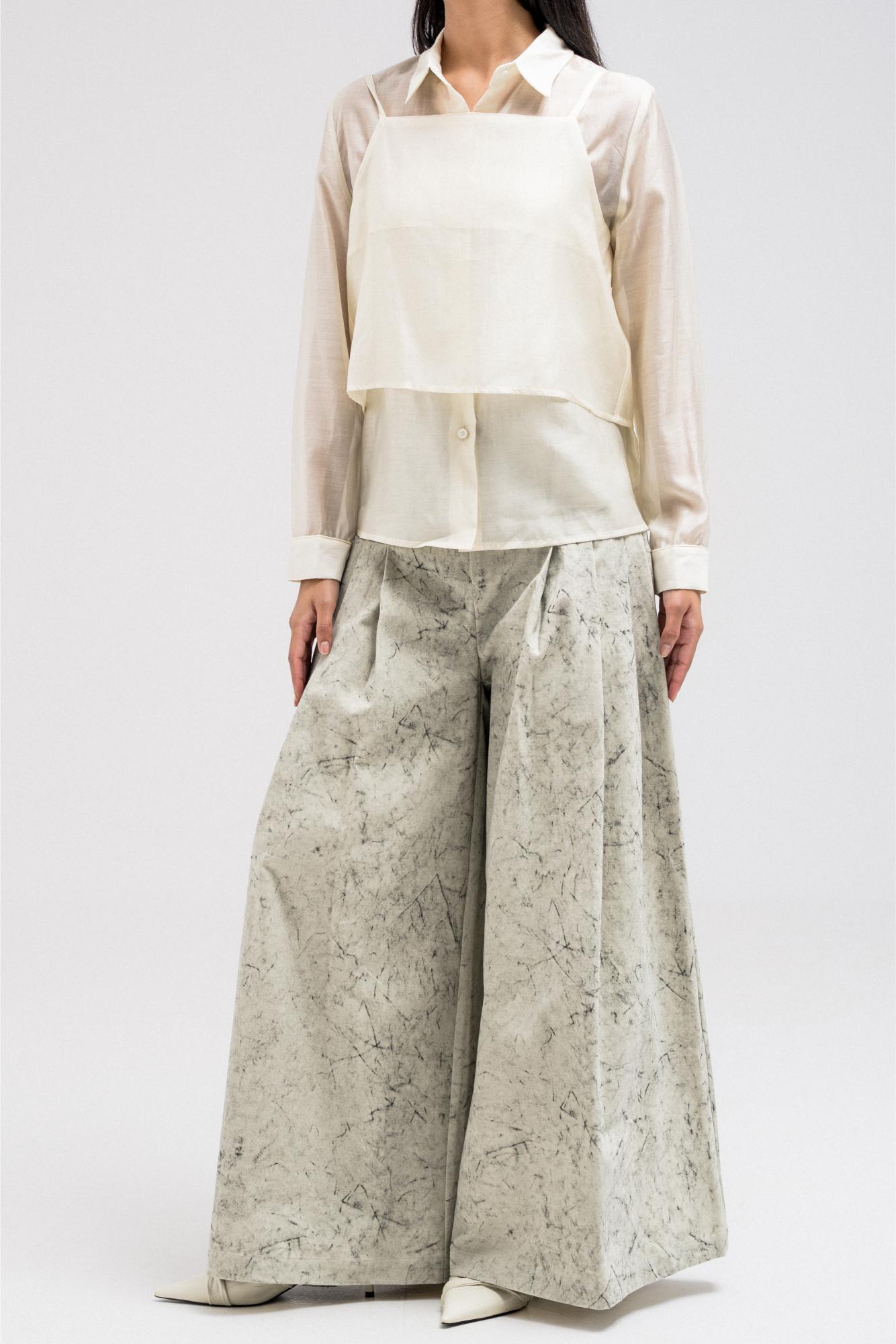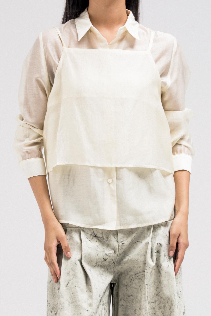 Unique layered top designed as a two-piece set. The inner piece is a classic long-sleeve shirt, while the outer sleeveless tank layer is worn on top to create a structured, dimensional effect. The overlapping design gives a modern layered illusion while keeping the look refined and versatile.