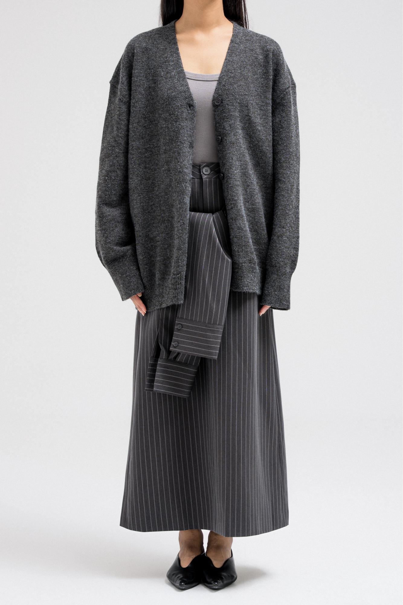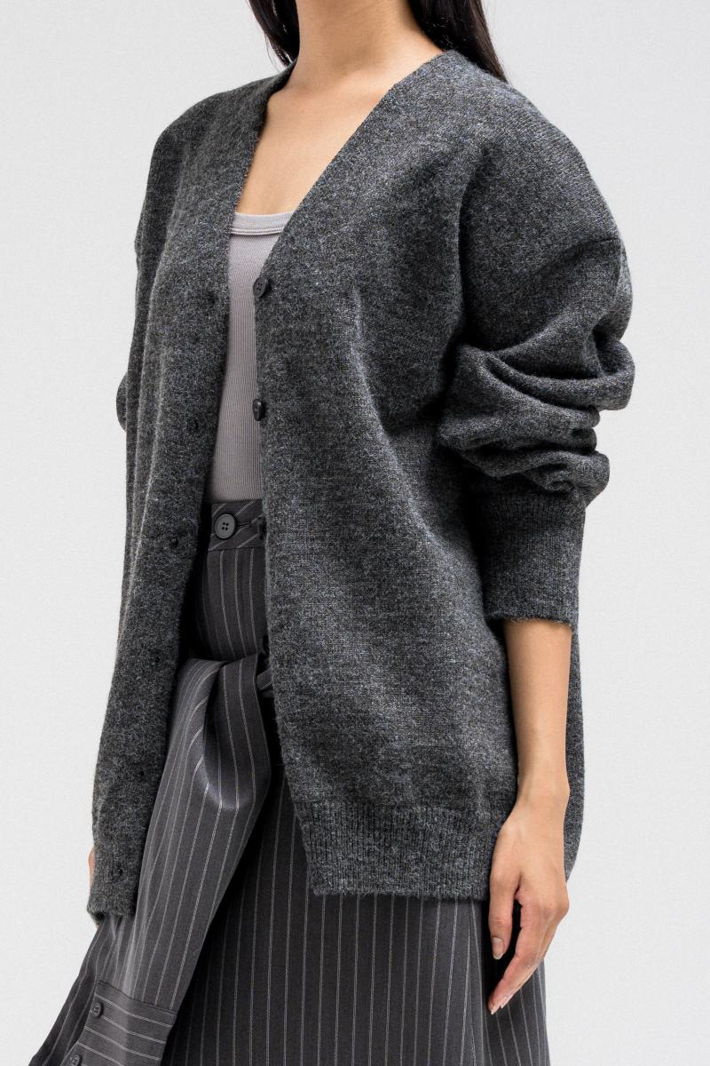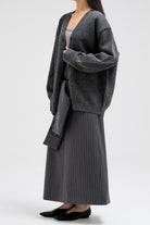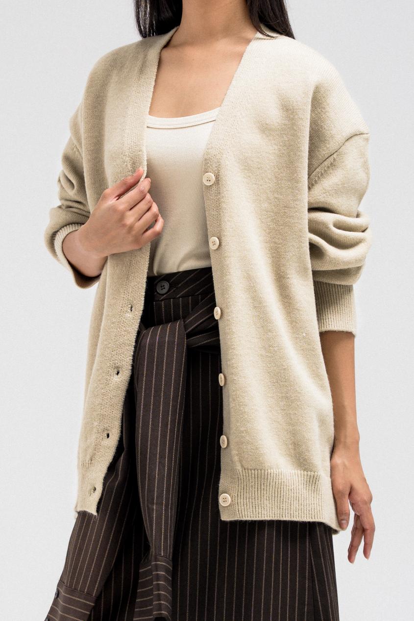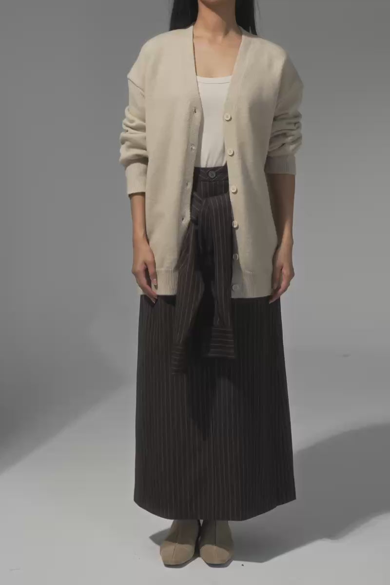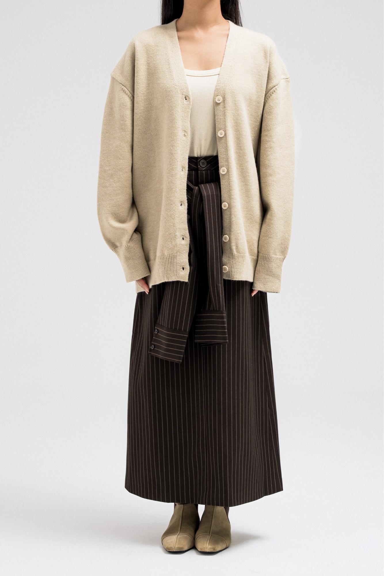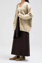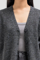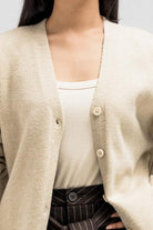 Soft and minimal, this knit cardigan features a clean V-neckline with a simple front button closure. The relaxed fit and smooth texture give it a timeless, easy-to-style look. Perfect to wear on its own or layered and nice to pair with the matching skirt for a coordinated set.