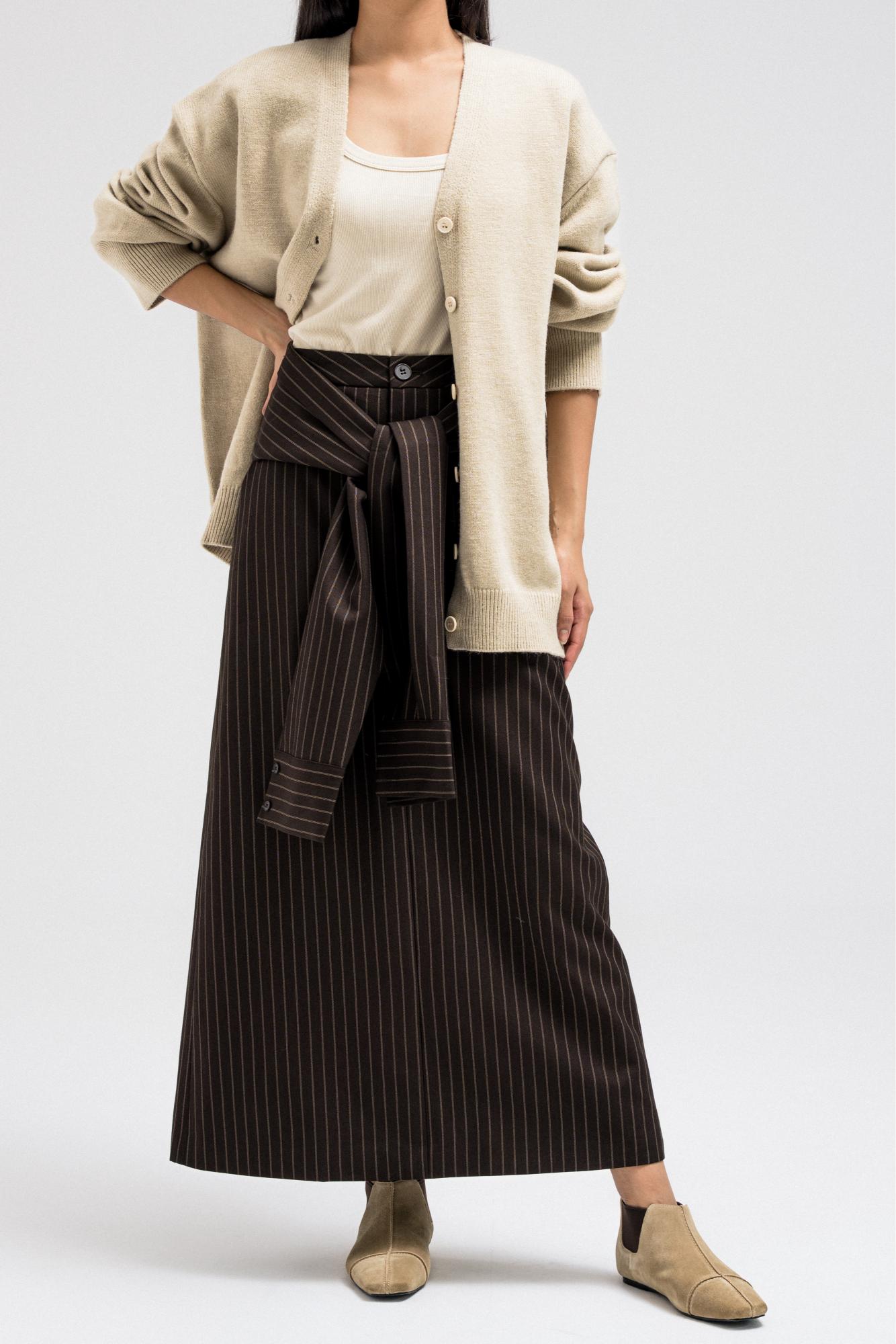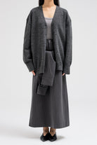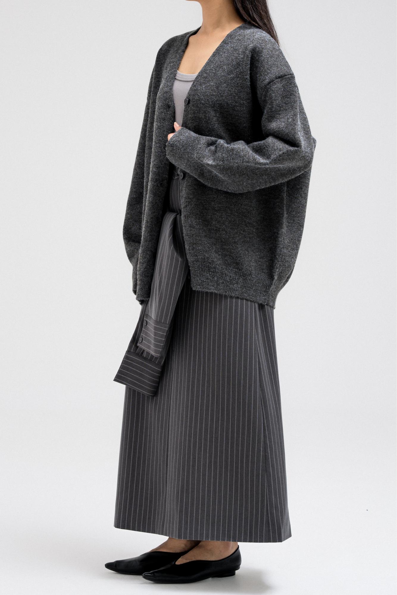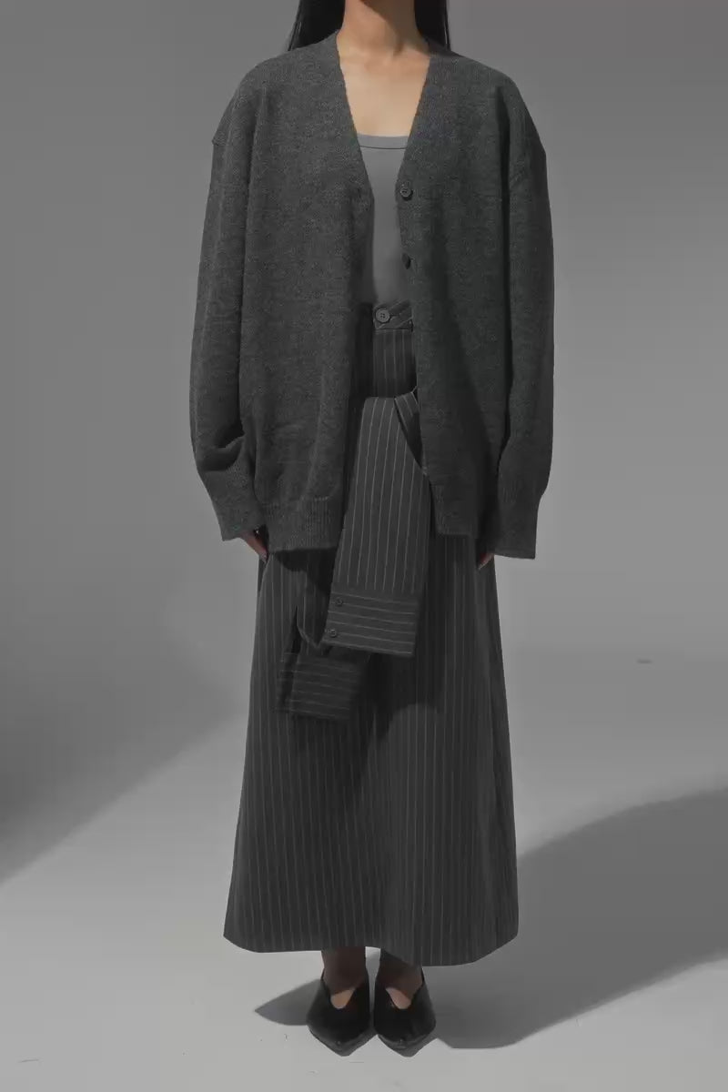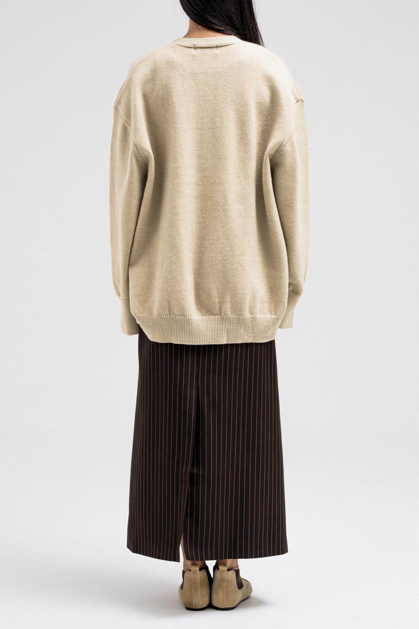Soft and minimal, this knit cardigan features a clean V-neckline with a simple front button closure. The relaxed fit and smooth texture give it a timeless, easy-to-style look. Perfect to wear on its own or layered and nice to pair with the matching skirt for a coordinated set.