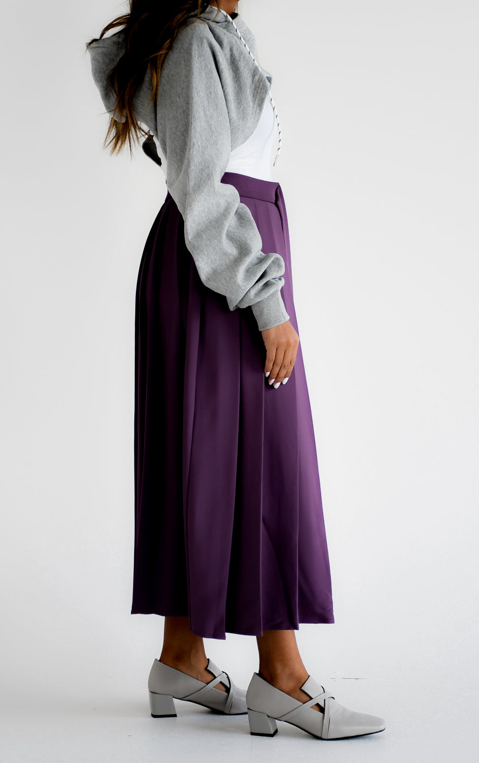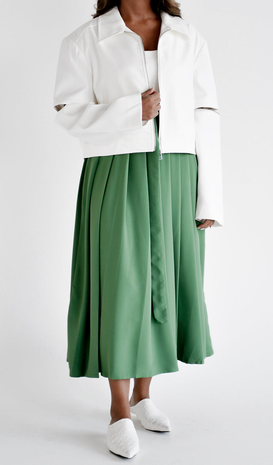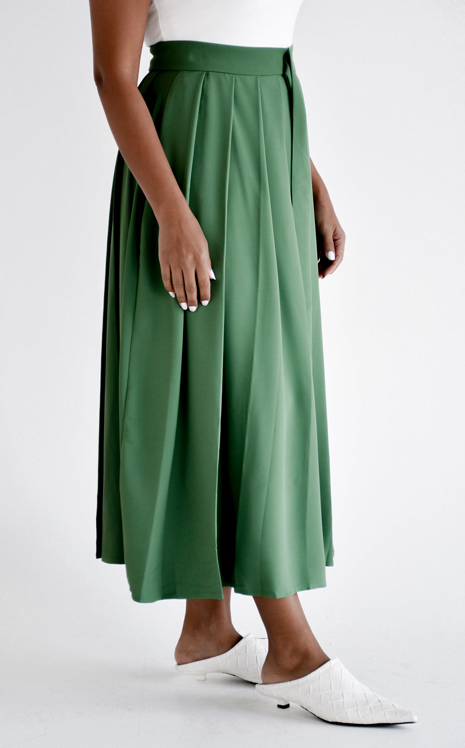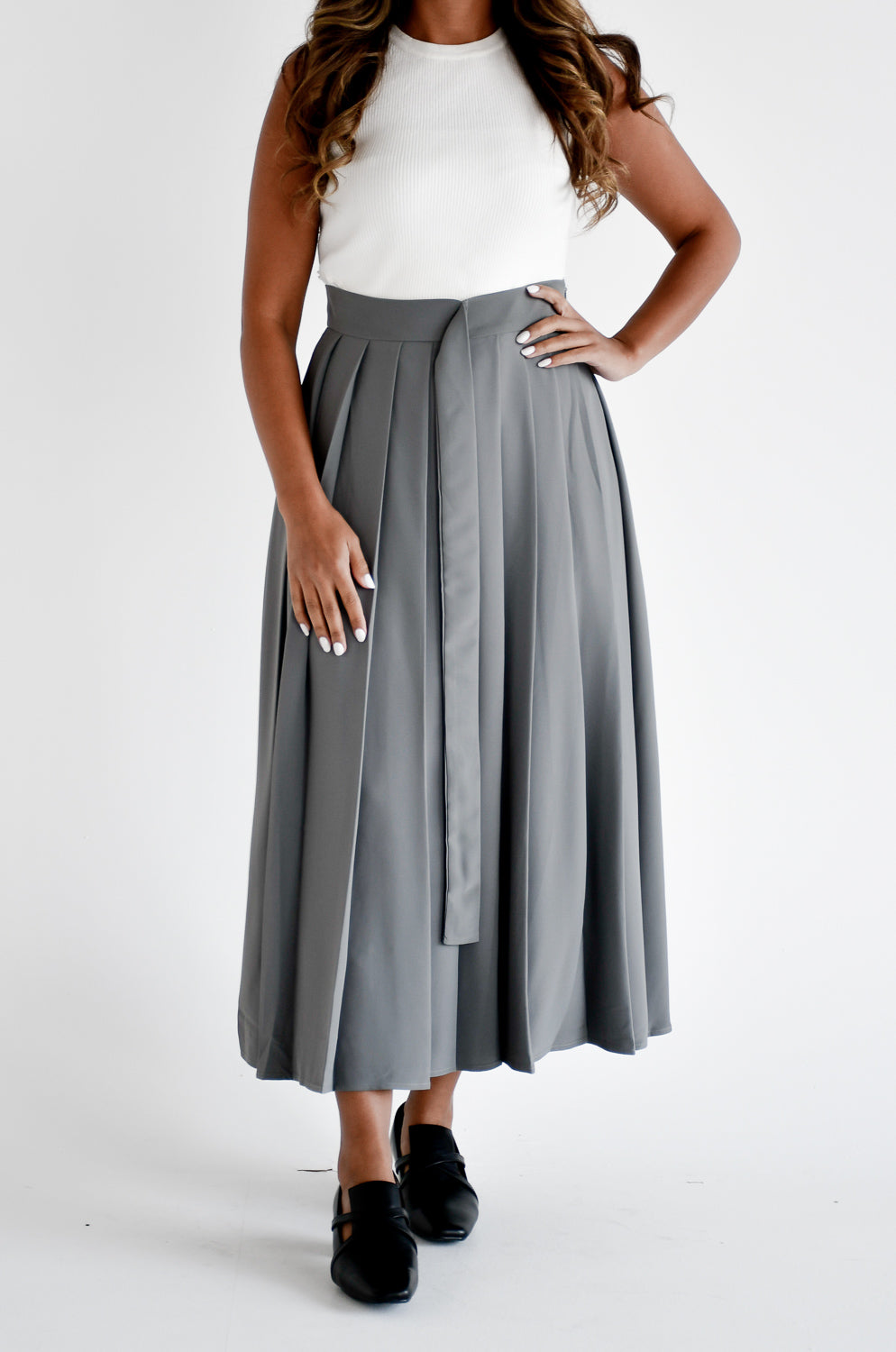 Pleated midi skirt with belt detail