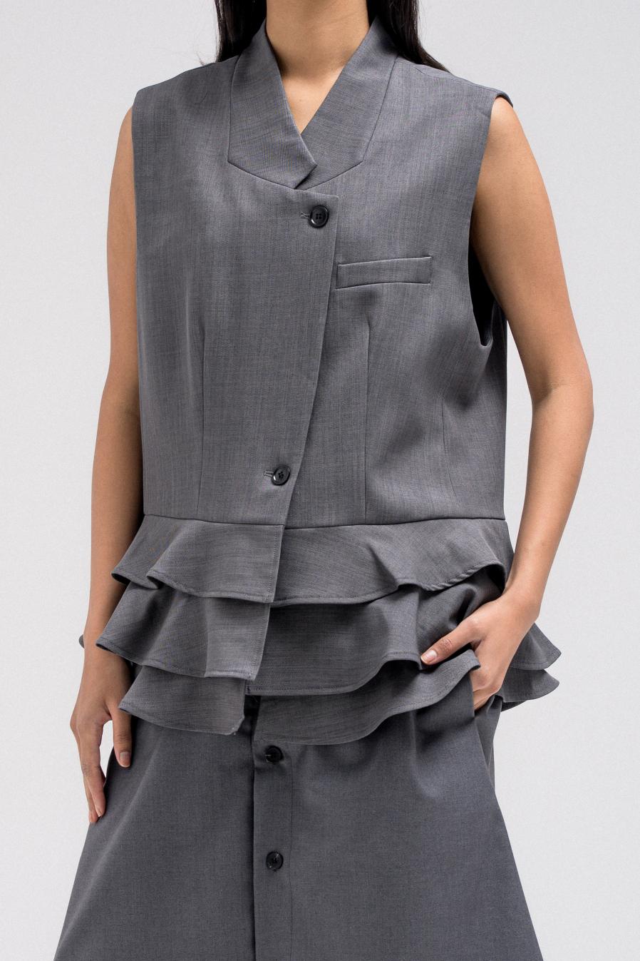 RUFFLED HEM TAILORED VEST