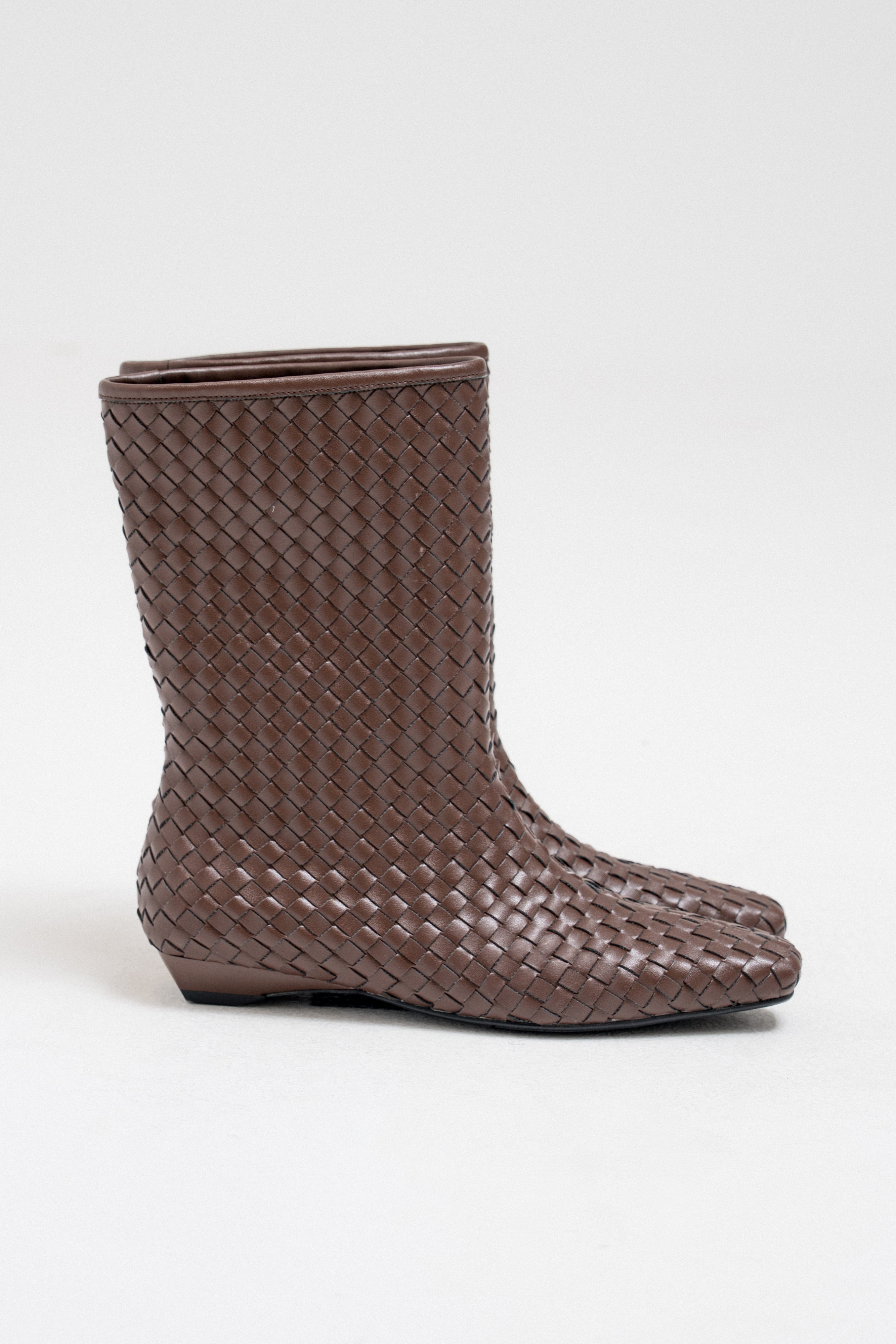 Sleek woven-textured ankle boots crafted from soft faux leather. The minimal pointed-toe design and block heel create a refined yet contemporary look, ideal for both casual and formal outfits.