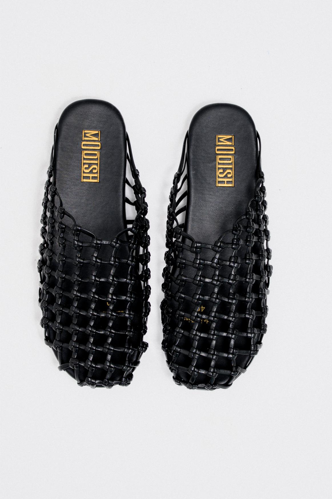 Lightweight flats with a knotted, open weave design crafted from a leather-like material. See-through, flexible, and super comfy. Perfect for everyday casual wear.