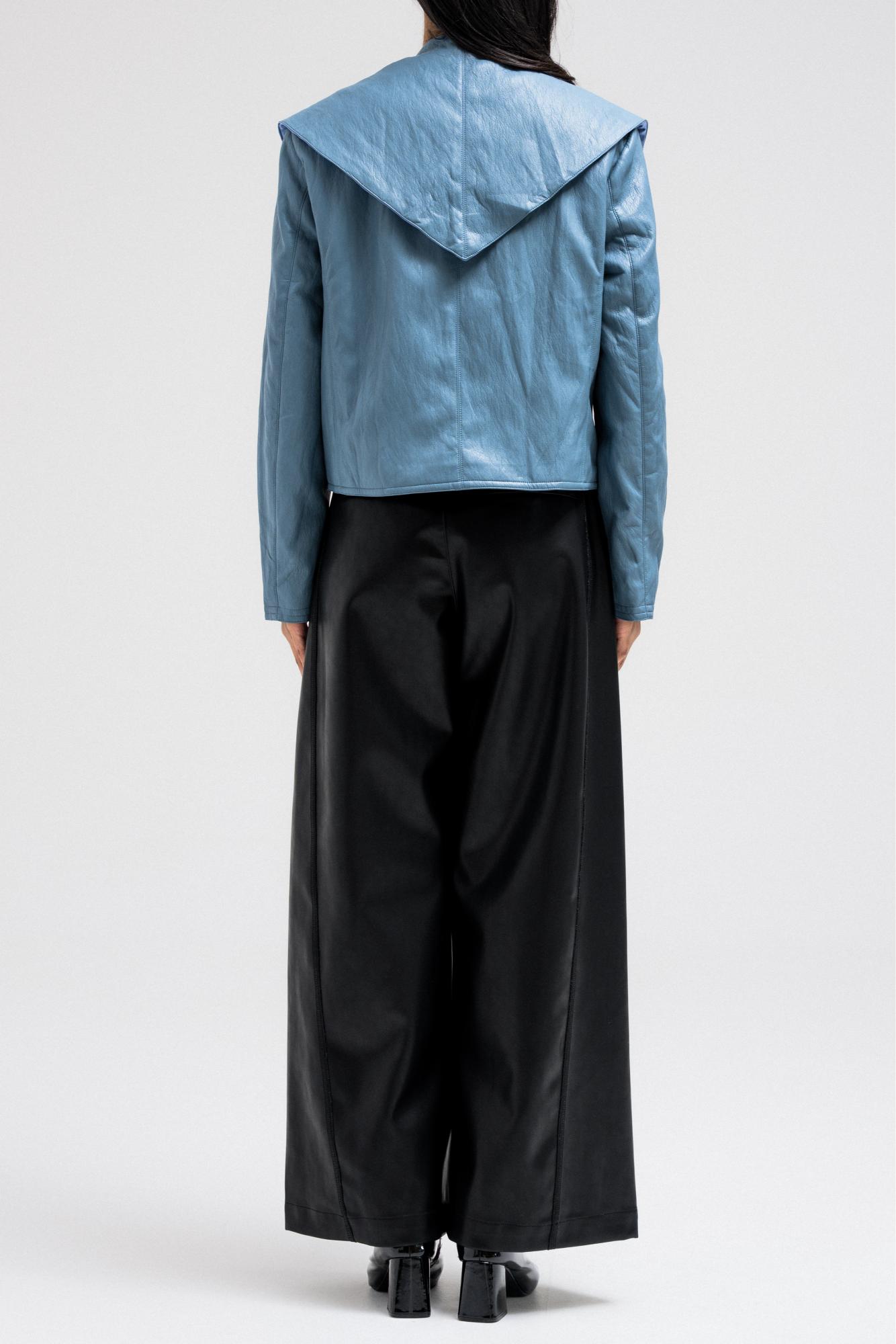 LEATHER CROPPED JACKET WITH DETACHABLE COLLAR