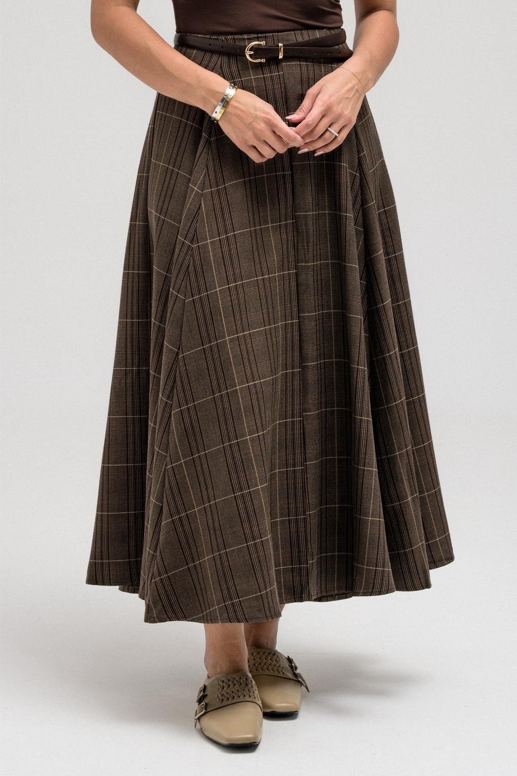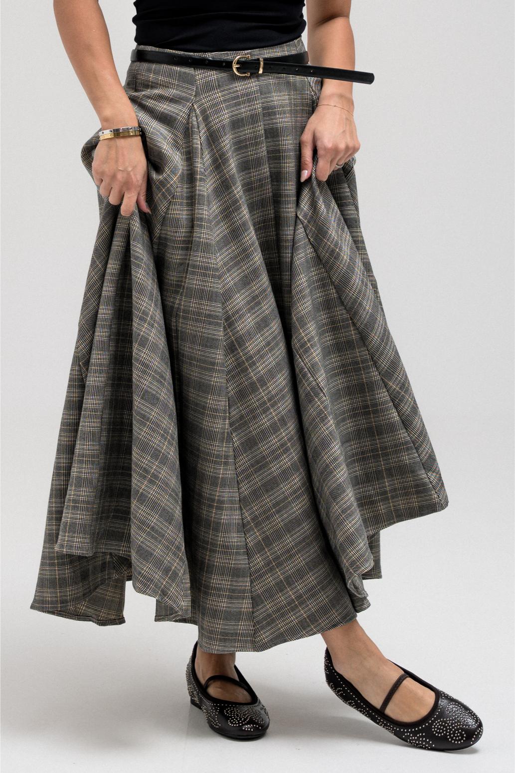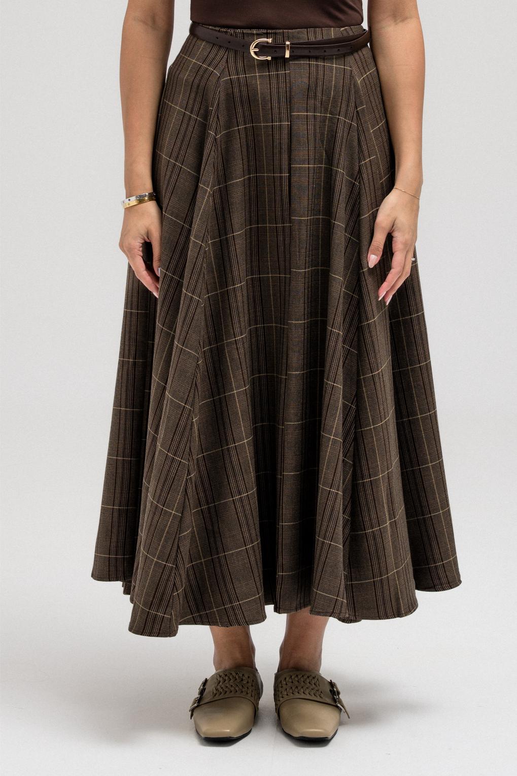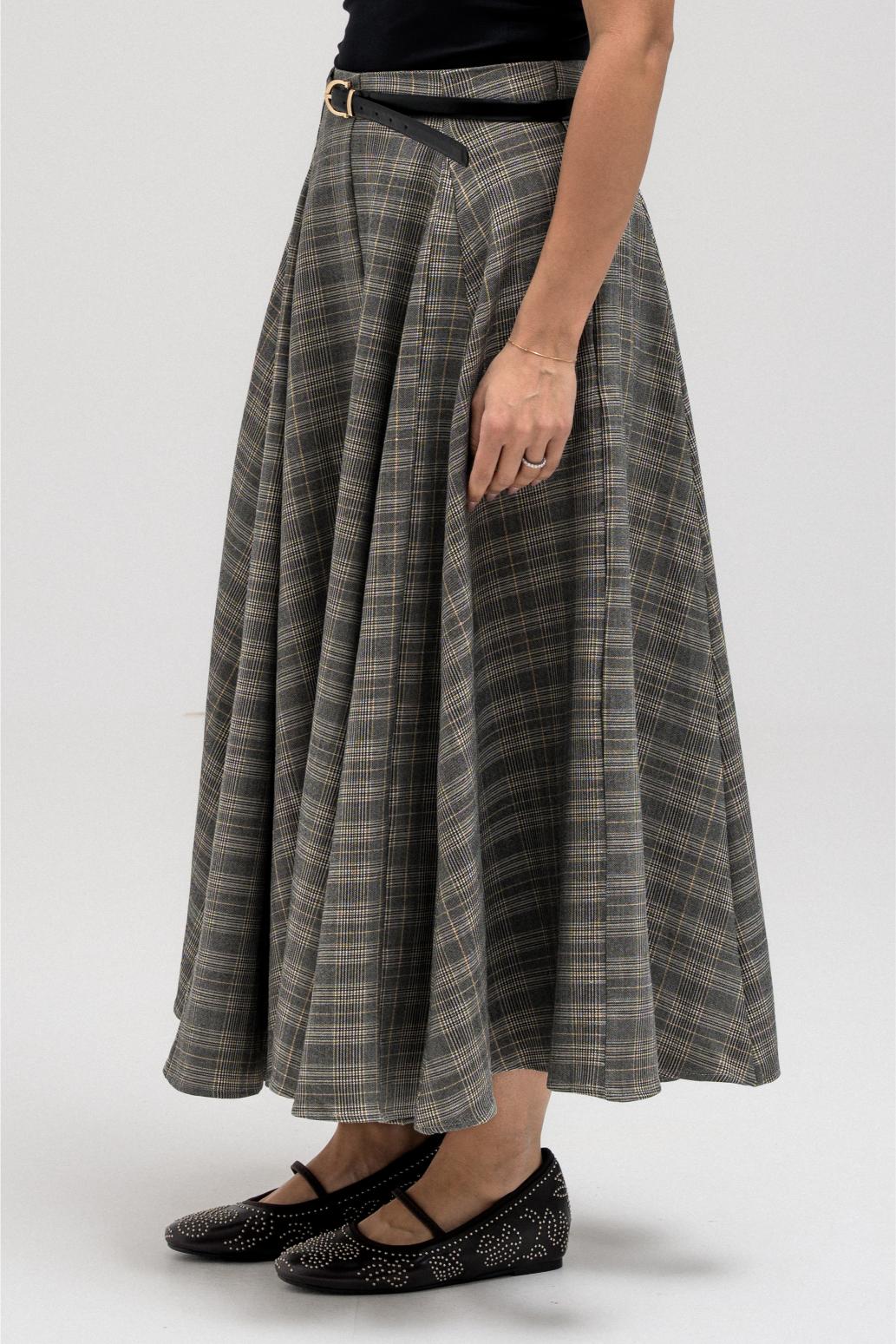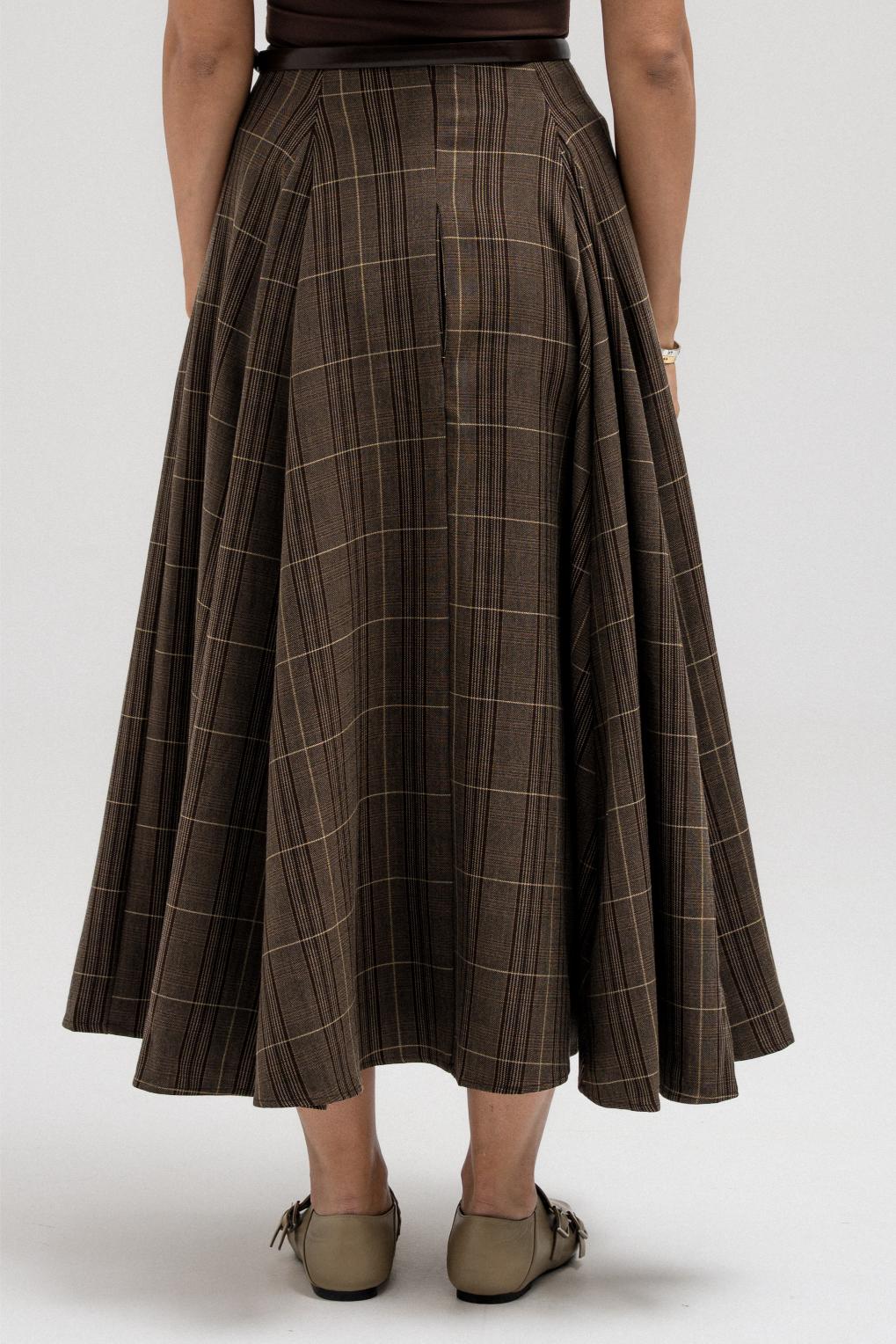 This flowy plaid skirt is designed with graceful movement and a flattering silhouette. It comes with a matching belt to cinch the waist and a back zipper closure for a clean finish. An easy piece to dress up or down while adding pattern and elegance to your outfit.
