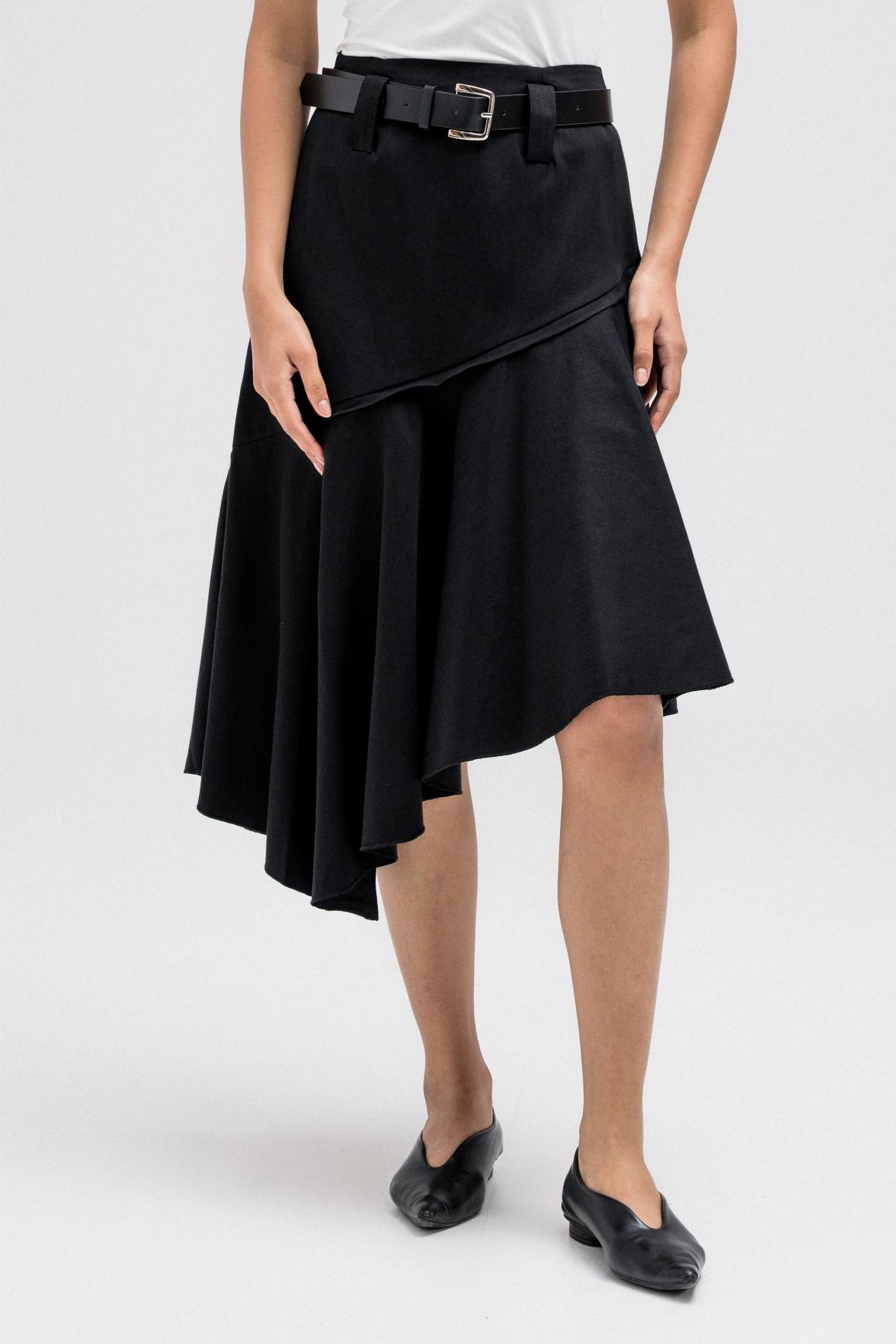 ASYMMETRICAL BELTED FLOWY SKIRT