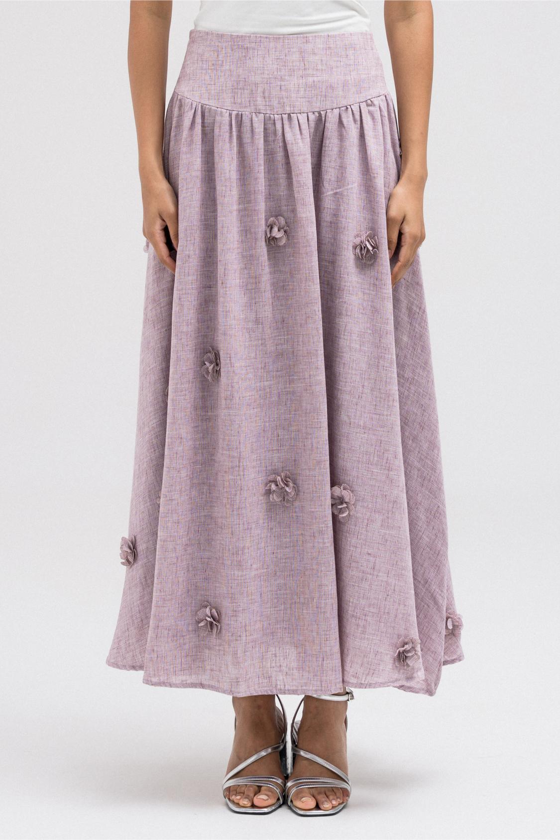 LONG FLOWY LINEN SKIRT WITH 3D FLORAL TEXTURE
